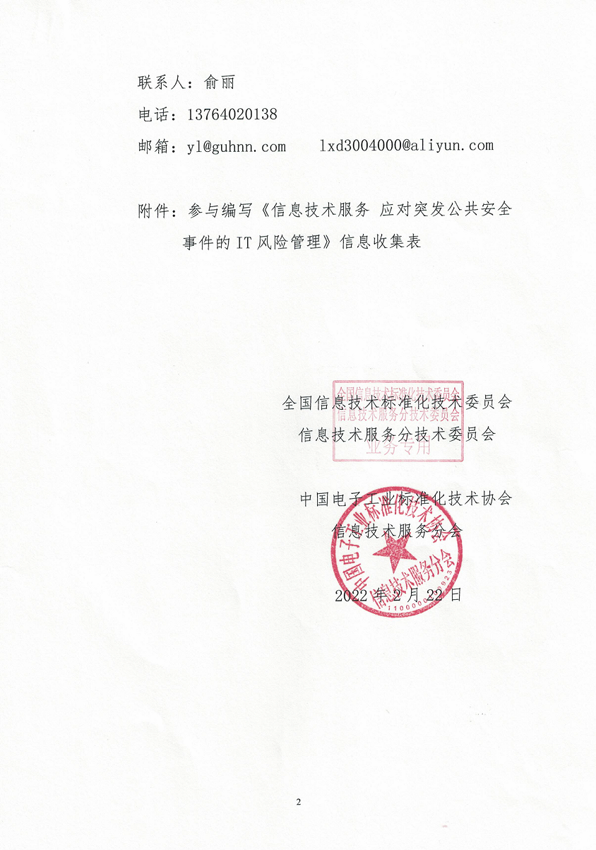 国标《信息技术服务 应对突发公共安全事件的IT风险管理》参编单位征集