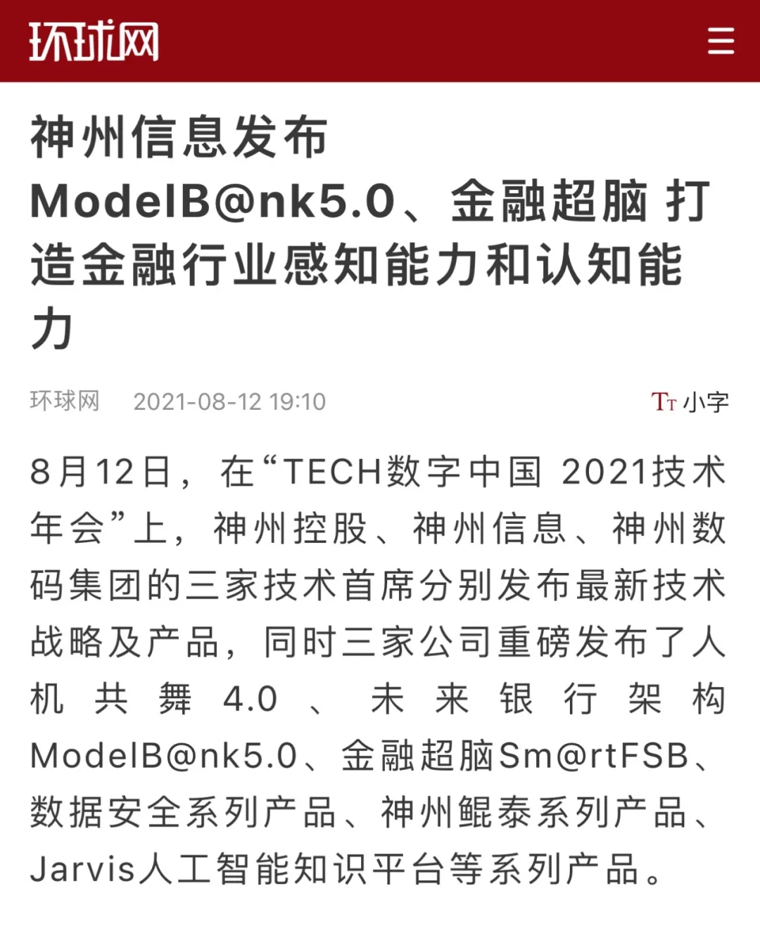 神州信息发布金融超脑Sm@rtFSB和ModelB@nk5.0