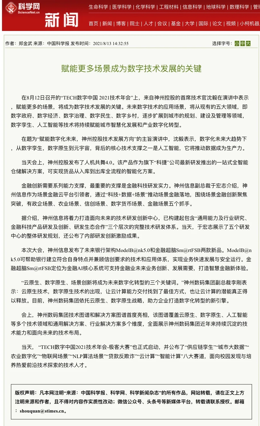 2021数字中国技术年会 神州控股、神州信息、710公海寰宇集团连发重磅产品